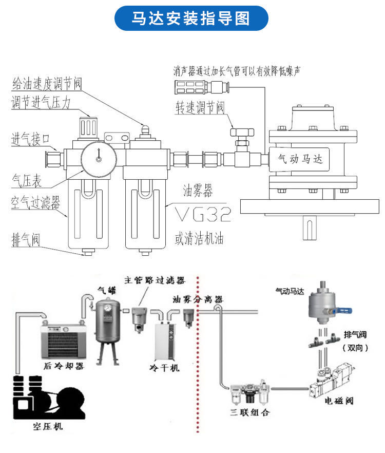 氣動馬達此款產品本廠按標準值增長了馬達氣缸。氣動馬達是把壓縮空氣的壓力能轉換為機械能裝置,氣動馬達應用在攪拌設備、食品藥物包裝、卷揚機、粉碎機、研磨機、卷撓裝置及自動生產線等設備上.